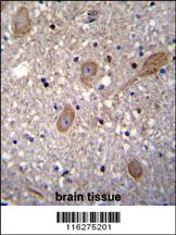 BTRC Antibody (N-term) (Cat. APR11251G)immunohistochemistry analysis in formalin fixed and paraffin embedded human brain tissue followed by peroxidase conjugation of the secondary antibody and DAB staining.This data demonstrates the use of BTRC Antibody (N-term) for immunohistochemistry. Clinical relevance has not been evaluated.