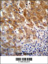 FAH Antibody (N-term) (Cat. APR10874G)immunohistochemistry analysis in formalin fixed and paraffin embedded human liver tissue followed by peroxidase conjugation of the secondary antibody and DAB staining.This data demonstrates the use of FAH Antibody (N-term) for immunohistochemistry. Clinical relevance has not been evaluated.