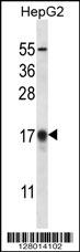 APG8b(MAP1LC3B) Antibody (T29) (Cat. APG01923G) western blot analysis in HepG2 cell line lysates (35ug/lane).This demonstrates the APG8b(MAP1LC3B) antibody detected the APG8b(MAP1LC3B) protein (arrow).