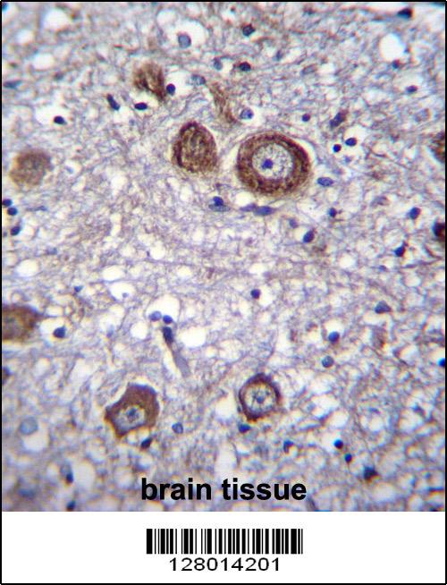 APG8b(MAP1LC3B) Antibody (N-term T29) (Cat. APG01923G)immunohistochemistry analysis in formalin fixed and paraffin embedded human brain tissue followed by peroxidase conjugation of the secondary antibody and DAB staining.This data demonstrates the use of APG8b(MAP1LC3B) Antibody (N-term T29) for immunohistochemistry. Clinical relevance has not been evaluated. |
