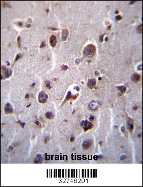 TM55B Antibody (C-term) (Cat. APC00042G)immunohistochemistry analysis in formalin fixed and paraffin embedded human brain tissue followed by peroxidase conjugation of the secondary antibody and DAB staining.This data demonstrates the use of TM55B Antibody (C-term) for immunohistochemistry. Clinical relevance has not been evaluated.