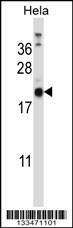 PRRG1 Antibody (N-term) (Cat. APR10913G) western blot analysis in Hela cell line lysates (35ug/lane).This demonstrates the PRRG1 antibody detected the PRRG1 protein (arrow). |