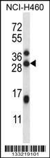 C17orf95 Antibody (C-term) (Cat. AMM08581G) western blot analysis in NCI-H460 cell line lysates (35ug/lane).This demonstrates the C17orf95 antibody detected the C17orf95 protein (arrow). |