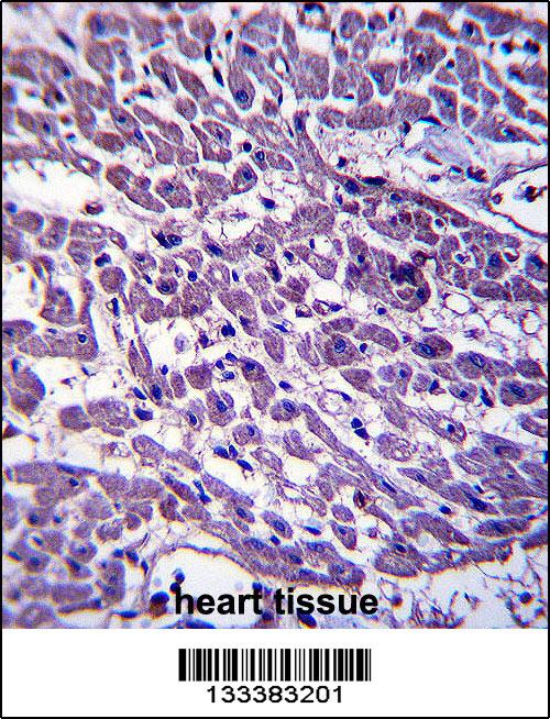 EMILIN3 Antibody (C-term) (Cat. AMM08622G)immunohistochemistry analysis in formalin fixed and paraffin embedded human heart tissue followed by peroxidase conjugation of the secondary antibody and DAB staining.This data demonstrates the use of EMILIN3 Antibody (C-term) for immunohistochemistry. Clinical relevance has not been evaluated. |