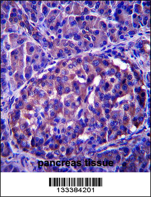LRRN4 Antibody (C-term) (Cat. APR14126G)immunohistochemistry analysis in formalin fixed and paraffin embedded human pancreas tissue followed by peroxidase conjugation of the secondary antibody and DAB staining.This data demonstrates the use of LRRN4 Antibody (C-term) for immunohistochemistry. Clinical relevance has not been evaluated. |
