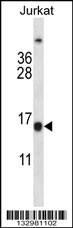 BCL2 Antibody (Center) (Cat. APR10813G) western blot analysis in Jurkat cell line lysates (35ug/lane).This demonstrates the BCL2 antibody detected the BCL2 protein (arrow).