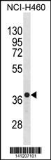 CXCR4 Antibody (N-term) (Cat. APR10833G) western blot analysis in NCI-H460 cell line lysates (35ug/lane).This demonstrates the CXCR4 antibody detected the CXCR4 protein (arrow). |