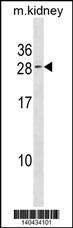 VPS25 Antibody (C-term) (Cat. AMM08703G) western blot analysis in kidney cell line lysates (35ug/lane).This demonstrates the VPS25 antibody detected the VPS25 protein (arrow). |