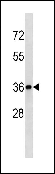 BLVRA Antibody (Center Y83) (Cat. APR10864G) western blot analysis in K562 cell line lysates (35ug/lane).This demonstrates the BLVRA antibody detected the BLVRA protein (arrow).