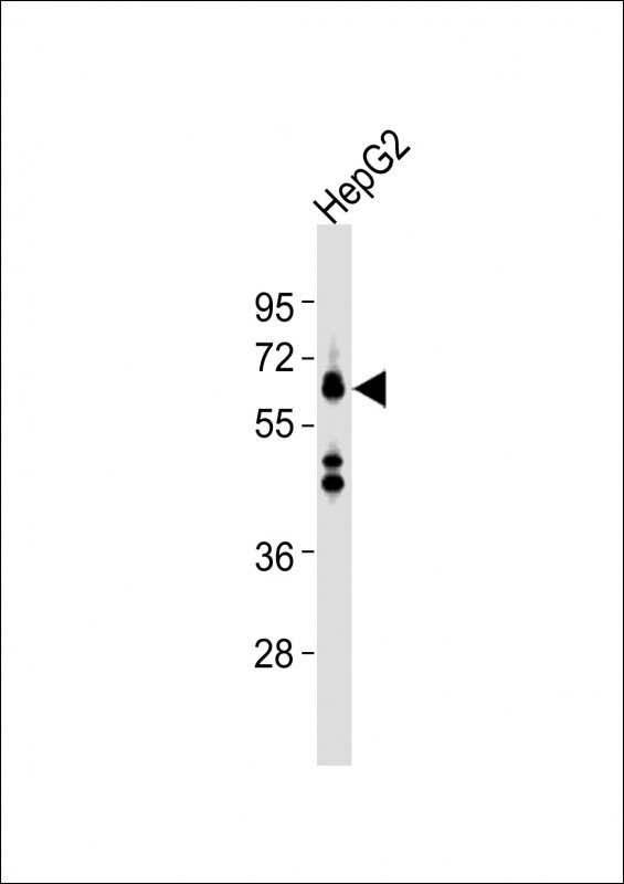 Anti-SLC2A1 Antibody (C-term)at 1:1000 dilution + HepG2 whole cell lysates Lysates/proteins at 20 μg per lane. Secondary Goat Anti-Rabbit IgG, (H+L), Peroxidase conjugated at 1/10000 dilution Predicted band size : 54 kDa Blocking/Dilution buffer: 5% NFDM/TBST. |