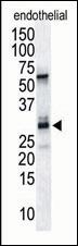 The anti-DSCR1 Pab (Cat. APR14062G) is used in Western blot to detect DSCR1 in endothelial tissue lysate. |
