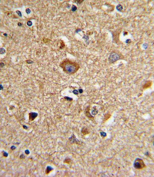 Formalin-fixed and paraffin-embedded human brain tissue with CD81 Antibody (C-term), which was peroxidase-conjugated to the secondary antibody, followed by DAB staining. This data demonstrates the use of this antibody for immunohistochemistry; clinical relevance has not been evaluated.
