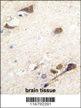 Formalin-fixed and paraffin-embedded human brain tissue reacted with ACHE antibody (N-term), which was peroxidase-conjugated to the secondary antibody, followed by DAB staining. This data demonstrates the use of this antibody for immunohistochemistry; clinical relevance has not been evaluated.