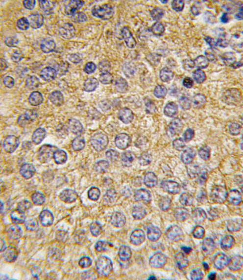 Formalin-fixed and paraffin-embedded human prostata carcinoma tissue reacted with PLAU antibody (N-term), which was peroxidase-conjugated to the secondary antibody, followed by DAB staining. This data demonstrates the use of this antibody for immunohistochemistry; clinical relevance has not been evaluated. |