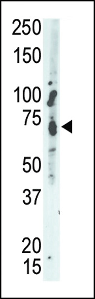The anti-MEG2 Pab (Cat. AMM08646G) is used in Western blot to detect MEG2 in A549 cell lysate.