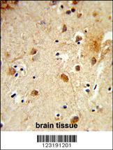Formalin-fixed and paraffin-embedded human brain tissue reacted with HRIHFB2025 Antibody (C-term), which was peroxidase-conjugated to the secondary antibody, followed by DAB staining. This data demonstrates the use of this antibody for immunohistochemistry; clinical relevance has not been evaluated.