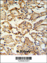 RHBG Antibody (C-term) (Cat. APR10921G) IHC analysis in formalin fixed and paraffin embedded mouse kidney tissue followed by peroxidase conjugation of the secondary antibody and DAB staining. This data demonstrates the use of the RHBG Antibody (C-term) for immunohistochemistry. Clinical relevance has not been evaluated.