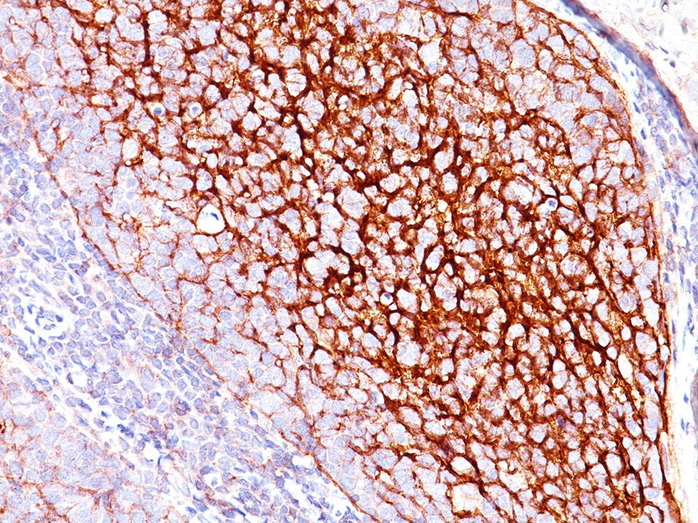 Recognizes a protein of 210-220kDa, which is identified as the complement receptor 1 (CR1)/CD35. This MAb is specific for a site in CR1 that is distal from the C3b-binding site, so that it is unable to block CR1 activity. This MAb is highly specific to CR1 and shows no cross-reaction with CR2. The primary function of CR1 is to serve as the cellular receptor for C3b and C4b, the most important components of the complement system leading to clearance of foreign macromolecules. The Knops blood group system is a system of antigens located on this protein. Follicular dendritic cells (FDC) are restricted to the B-cell regions of secondary lymphoid follicles. They are CD21+/CD35+/CD1a-. This MAb labels follicular dendritic cells and follicular dendritic cell sarcoma.