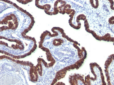 Formalin-fixed, paraffin-embedded Ovarian Carcinoma stained with Cytokeratin 7 Monoclonal Antibody (OV-TL12/30)