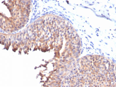 Formalin-fixed, paraffin-embedded human Bladder Carcinoma stained with Cytokeratin 10 Monoclonal Antibody (KRT10/844).