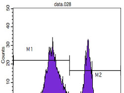 Figure 1: Flow cytometric analysis of blood T cells using CD4 mouse mAb (M2) and negative control (M1). |