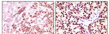 Figure 2: Immunohistochemical analysis of paraffin-embedded human breast carcinoma, using ER-alpha mouse mAb showing nuclear expression with DAB staining.