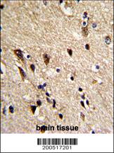 Formalin-fixed and paraffin-embedded human brain reacted with TBB1 Antibody, which was peroxidase-conjugated to the secondary antibody, followed by DAB staining. This data demonstrates the use of this antibody for immunohistochemistry; clinical relevance has not been evaluated. |