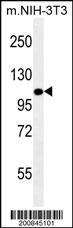 LAMP2 Antibody (Cat. APR08129G) western blot analysis in mouse NIH-3T3 cell line lysates (35μg/lane).This demonstrates the LAMP2 antibody detected the LAMP2 protein (arrow).