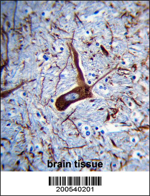 MAP2 Antibody (Ascites) (Cat. APR11275G)immunohistochemistry analysis in formalin fixed and paraffin embedded human brain tissue followed by peroxidase conjμgation of the secondary antibody and DAB staining.This data demonstrates the use of MAP2 Antibody (Ascites) for immunohistochemistry. Clinical relevance has not been evaluated. |