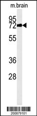 TNK1 Antibody (Cat. AMM08261G) western blot analysis in mouse brain cell line lysates (15μg/lane).This demonstrates the TNK1 antibody detected the TNK1 protein (arrow).(1:500)