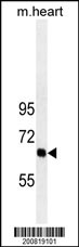 ACVR1B (Cat. APR14823G) western blot analysis in mouse heart tissue lysates (35μg/lane).This demonstrates the ACVR1B antibody detected the ACVR1B protein (arrow).(1?1000) |