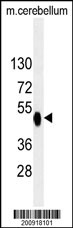 PDK2 (Cat. APR09003G) western blot analysis in mouse cerebellum tissue lysates (35μg/lane).This demonstrates the PDK2 antibody detected the PDK2 protein (arrow).(1:32000) |