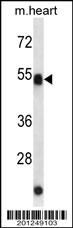 ATG4C Antibody (Cat. APG02048G) western blot analysis in mouse heart tissue lysates (35μg/lane).This demonstrates the ATG4C antibody detected the ATG4C protein (arrow). |