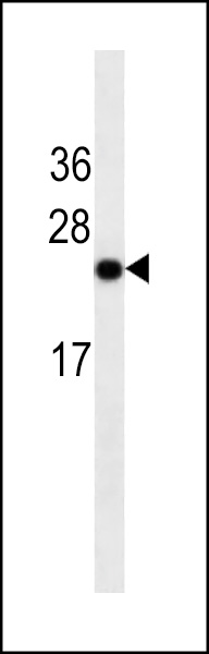 Glucagon Antibody (Cat. AMM04802G) western blot analysis in HepG2 cell line lysates (35μg/lane).This demonstrates the Glucagon antibody detected the Glucagon protein (arrow). |