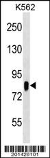 RPS6KA3 Antibody (Cat. AMM07661G) western blot analysis in K562 cell line lysates (35μg/lane).This demonstrates the RPS6KA3 antibody detected the RPS6KA3 protein (arrow).