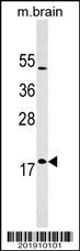 GABARAP Antibody (Cat. APG03307G) western blot analysis in mouse brain tissue lysates (35μg/lane).This demonstrates the GABARAP antibody detected the GABARAP protein (arrow). |