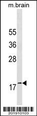 Anti- at 1:1000 dilution + SH-SY5Y whole cell lysate Lysates/proteins at 20 μg per lane. Secondary Goat Anti-mouse IgG, (H+L), Peroxidase conjugated at 1/10000 dilution. Predicted band size : 14 kDa Blocking/Dilution buffer: 5% NFDM/TBST.