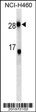CRP Antibody (Cat. APG02786G) western blot analysis in NCI-H460 cell line lysates (35μg/lane).This demonstrates the CRP antibody detected the CRP protein (arrow). |