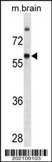 GAD2 Antibody (Cat. AMM04665G) western blot analysis in mouse brain tissue lysates (35μg/lane).This demonstrates the GAD2 antibody detected the GAD2 protein (arrow).