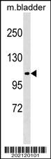 FGA Antibody (N-term) (Cat. AMM04536G) western blot analysis in mouse bladder tissue lysates (35μg/lane).This demonstrates the FGA antibody detected the FGA protein (arrow). |