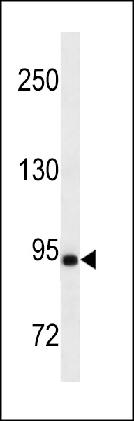 MAP3K12 Antibody (Cat. APR17283G) western blot analysis in mouse brain tissue lysates (35μg/lane).This demonstrates the MAP3K12 antibody detected the MAP3K12 protein (arrow). |
