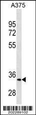 MC1R Antibody (Center)(Cat. APR08361G) western blot analysis in A375 cell line lysates (35μg/lane).This demonstrates the MC1R antibody detected the MC1R protein (arrow). |