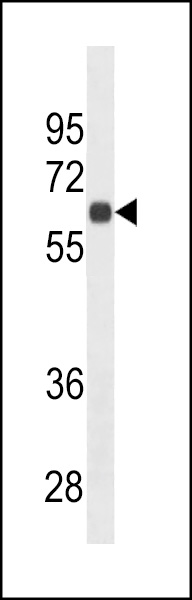 CD138 Antibody (C-term)(Ascites)(Cat. APG02479G) western blot analysis in HepG2 cell line lysates (35μg/lane).This demonstrates the CD138 antibody detected the CD138 protein (arrow).