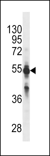 CYP2C9 Antibody (N-term)(Ascites)(Cat. APG02887G) western blot analysis in NCI-H460 cell line lysates (35μg/lane).This demonstrates the CYP2C9 antibody detected the CYP2C9 protein (arrow). |