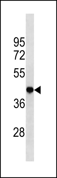 TBP Antibody (Cat. APR13718G) western blot analysis in Hela cell line lysates (35μg/lane).This demonstrates the TBP antibody detected the TBP protein (arrow). |