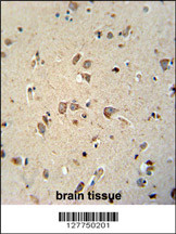 NIPA4 antibody (N-term) (Cat. APR08743G) immunohistochemistry analysis in formalin fixed and paraffin embedded human brain tissue followed by peroxidase conjugation of the secondary antibody and DAB staining. This data demonstrates the use of the NIPA4 antibody (N-term) for immunohistochemistry. Clinical relevance has not been evaluated. |