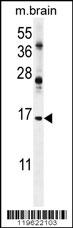 ENSA Antibody (Center) (Cat. APR11832G) western blot analysis in mouse brain tissue lysates (35ug/lane).This demonstrates the ENSA antibody detected the ENSA protein (arrow).