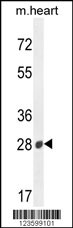 B3GAT2 Antibody (Center) (Cat. APG02153G) western blot analysis in mouse heart tissue lysates (35ug/lane).This demonstrates the B3GAT2 antibody detected the B3GAT2 protein (arrow). |