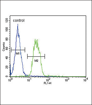 S6A12 Antibody (N-term) (Cat. APR13190G) flow cytometric analysis of MDA-MB231 cells (right histogram) compared to a negative control cell (left histogram).FITC-conjugated goat-anti-rabbit secondary antibodies were used for the analysis. |