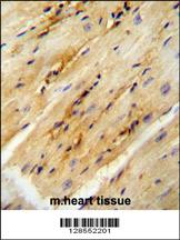 GPD1L antibody (N-term) (Cat. AMM05181G) immunohistochemistry analysis in formalin fixed and paraffin embedded mouse heart tissue followed by peroxidase conjugation of the secondary antibody and DAB staining. This data demonstrates the use of the GPD1L antibody (N-term) for immunohistochemistry. Clinical relevance has not been evaluated.